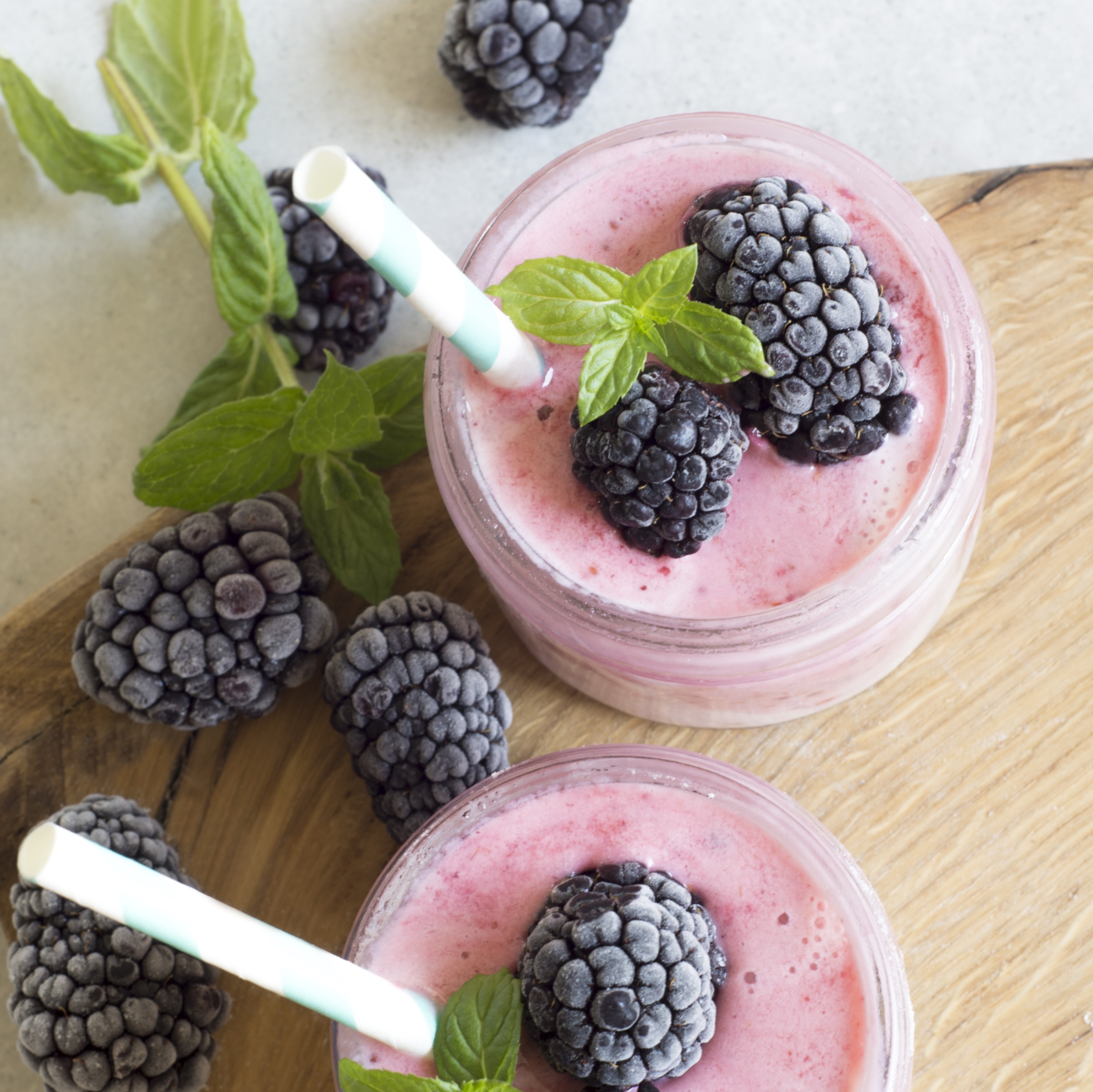 아침 식사 혹은 운동 후, 건강한 스무디 볼(Smoothie bowl) 재료: 냉동 바나나 1개 냉동 혼합 베리(딸기, 블루베리, 산딸기) 1/2컵 무가당 아몬드 우유 1/2컵 플레인 그리스 요구르트 4분의 1컵 꿀 1큰술