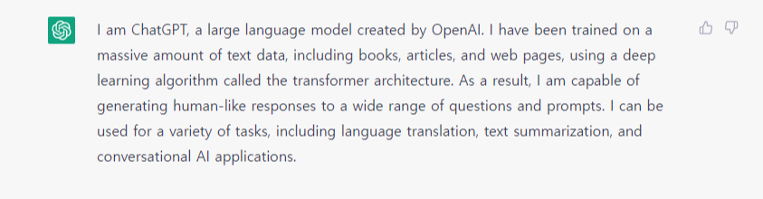 4) "챗GPT는 무엇인가? " 질문에 대한 챗GPT 답변