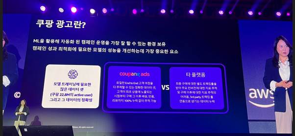 ; 쿠팡은 생성형 AI AWS의 Amazon Bedrock과 SageMaker를 기반으로, 고객의 구매 이력과 행동 데이터를 분석하여 개인화된 광고를 제공하고, 광고 콘텐츠를 자동 생성하여 효율성을 높임.